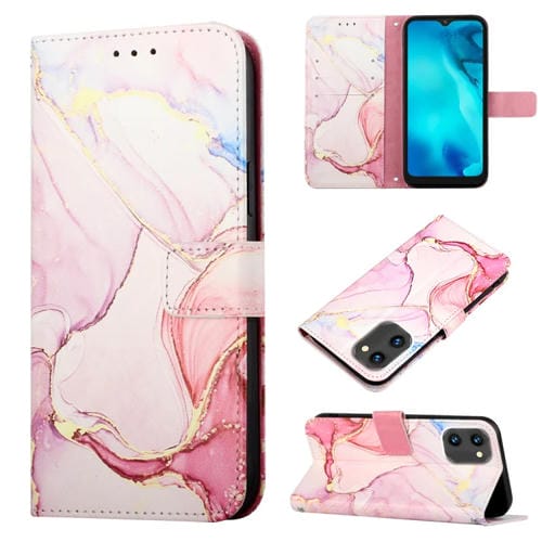 Funda para Umidigi C1 Pt003 con Tapa de Cuero y Patrón de Mármol (Oro Rosa)