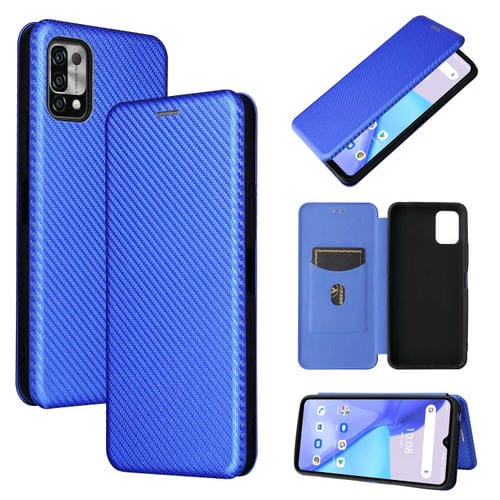 Funda para Umidigi Power 5 TPU + PC con Textura Fibra de Carbono y Ranura para Tarjeta (Azul)