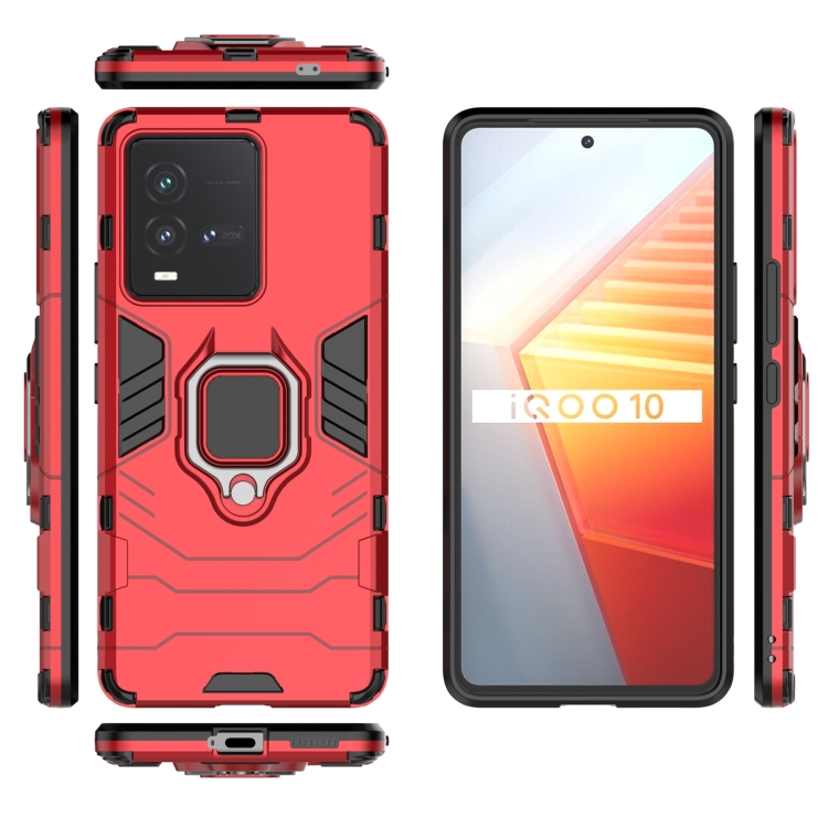 Para Vivo Iqoo 10 PC + TPU Funda Protectora para Teléfono a Prueba de Golpes con Soporte de Anillo Magnético (Rojo)