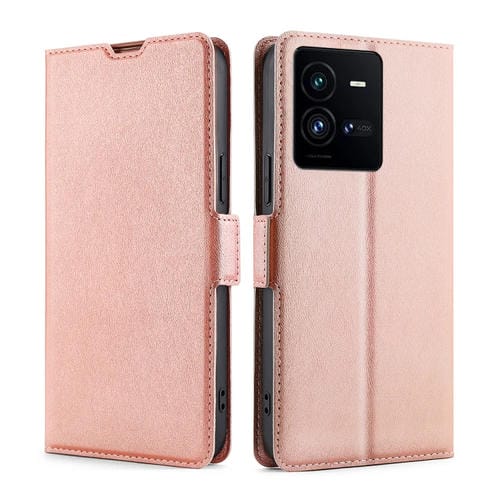 Para Vivo Iqoo 10 Pro 5G Estuche de Teléfono de Cuero con Hebilla Lateral de Voltaje Ultrafino (Oro Rosa)