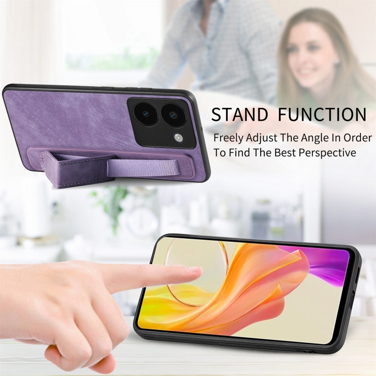 Para Vivo Iqoo 11 5G Funda Trasera de Cuero con Soporte para Pulsera Retro (Púrpura)