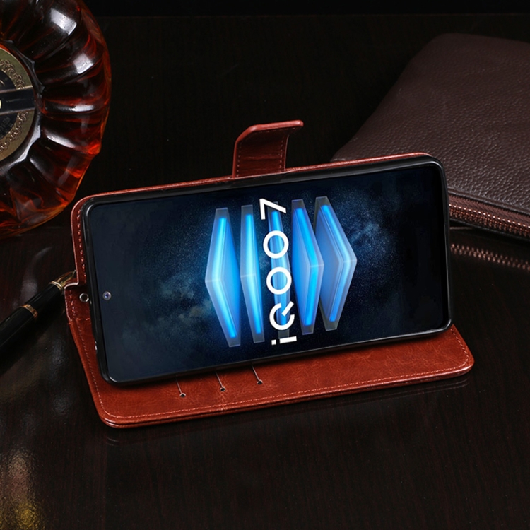 Para Vivo Iqoo 7 Idewei Crazy Horse Texture Horizontal Flip Funda de Cuero con Soporte y Ranuras para Tarjetas y Billetera (Rojo)