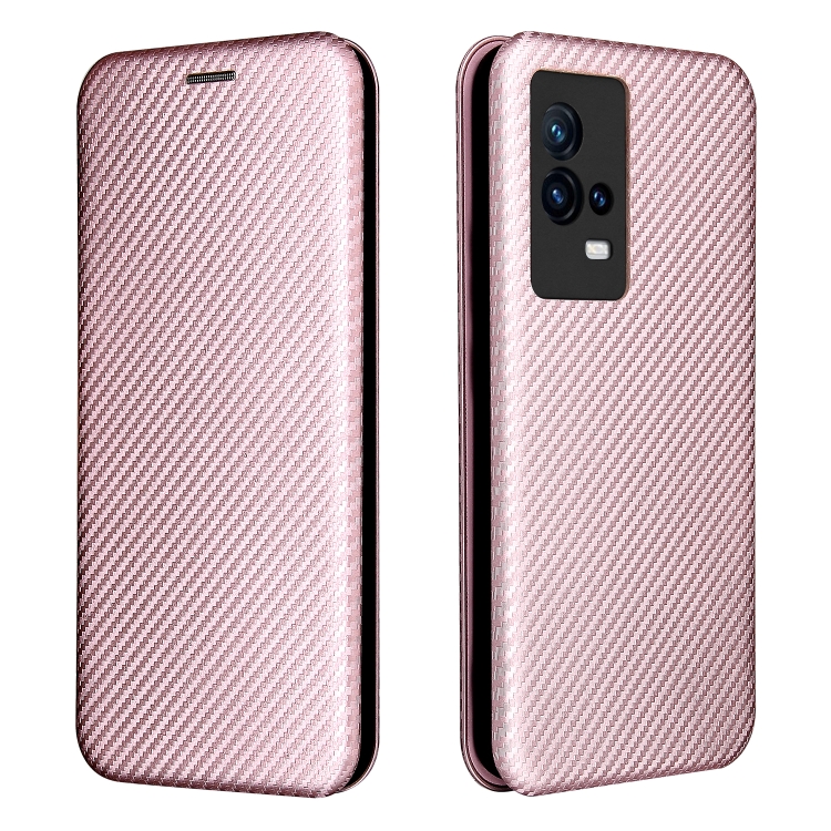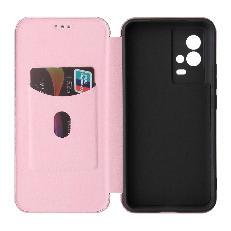 Para Vivo Iqoo 8 Textura de Fibra de Carbono Flip Horizontal TPU + PC + Funda de Cuero Pu con Ranura para Tarjeta (Rosa)
