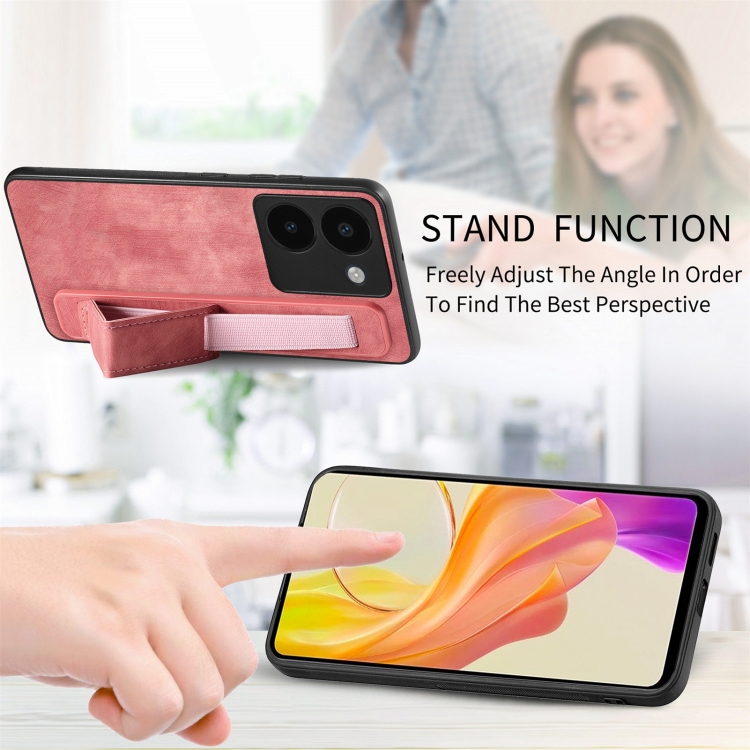 Para Vivo Iqoo Z8 Estuche Retro para Teléfono con Soporte para Pulsera y Parte Trasera de Cuero (Rosa)