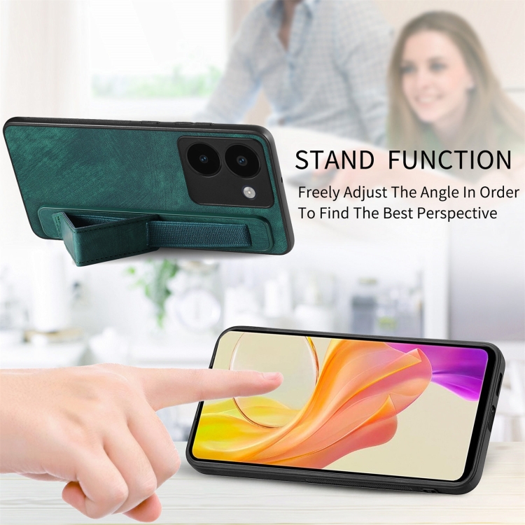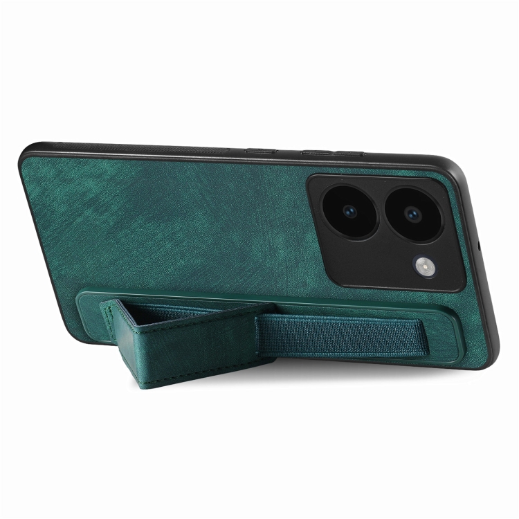 Para Vivo S16 / V27 Funda Trasera de Cuero con Soporte para Pulsera Retro (Verde)