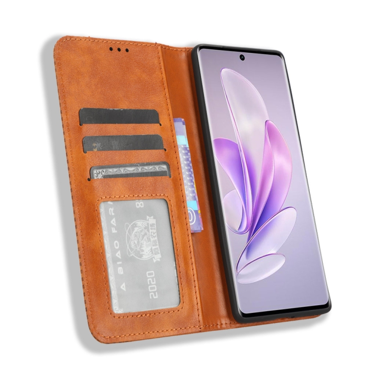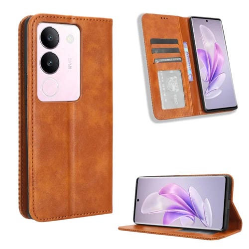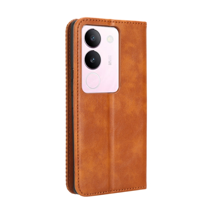 Para Vivo S17 5G / S17 Pro Hebilla Magnética Textura Retro Funda de Cuero para Teléfono (Marrón)