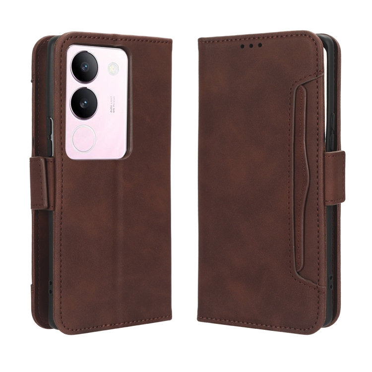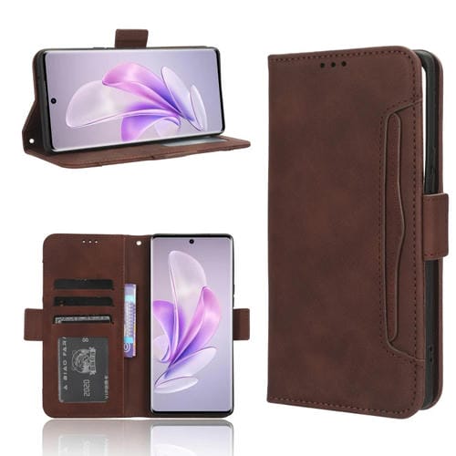 Para Vivo S17 5G / S17 Pro Skin Feel Becerro Textura Ranuras para Tarjetas Funda de Cuero para Teléfono (Marrón)
