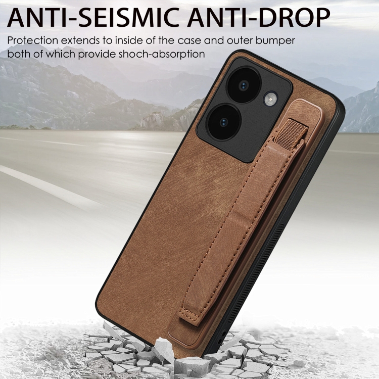 Para Vivo S17E 5G Funda Retro para Teléfono con Soporte de Pulsera Retro (Marrón)