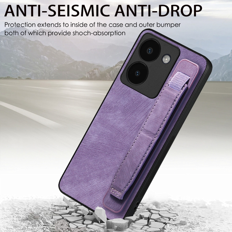 Para Vivo S17E 5G Funda Trasera de Cuero con Soporte para Pulsera Retro (Púrpura)