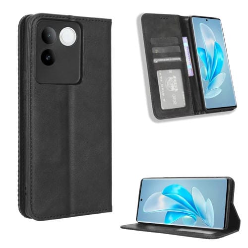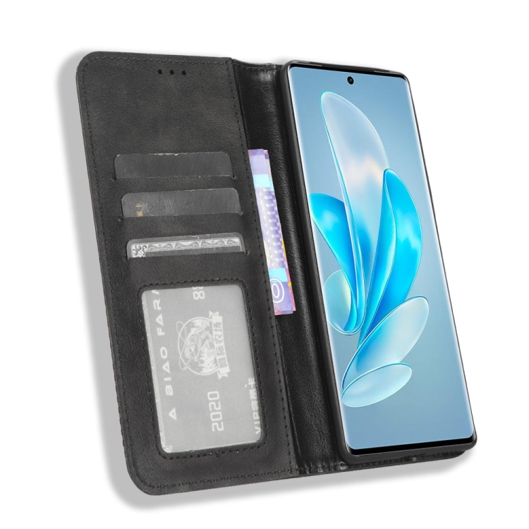 Para Vivo S17E Hebilla Magnética Textura Retro Funda de Cuero para Teléfono (Negro)