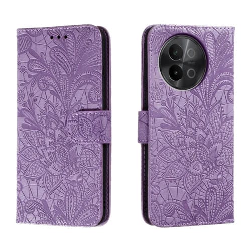 Para Vivo S18E Funda para Teléfono de Cuero con Tapa y Estampado de Flores de Encaje (Púrpura)