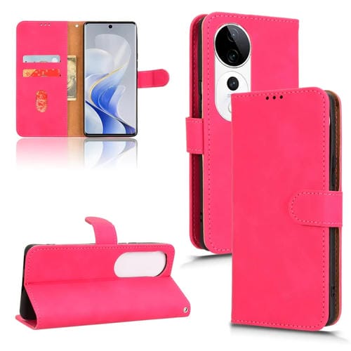 Para Vivo S19 Pro / V40 Skin Feel Funda de Cuero con Tapa Magnética para Teléfono (Rojo Rosa)
