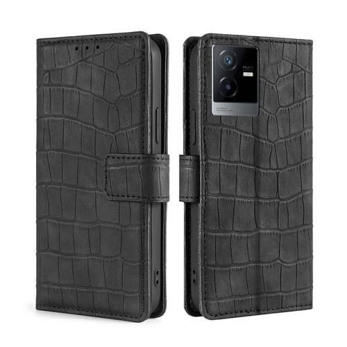 Para Vivo T2X 5G/Y73T/Iqoo Z6X Skin Feel Cocodrilo Cierre Magnético Funda de Cuero para Teléfono (Negro)