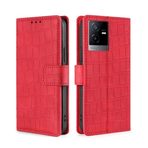 Para Vivo T2X 5G/Y73T/Iqoo Z6X Skin Feel Cocodrilo Cierre Magnético Funda de Cuero para Teléfono (Rojo)