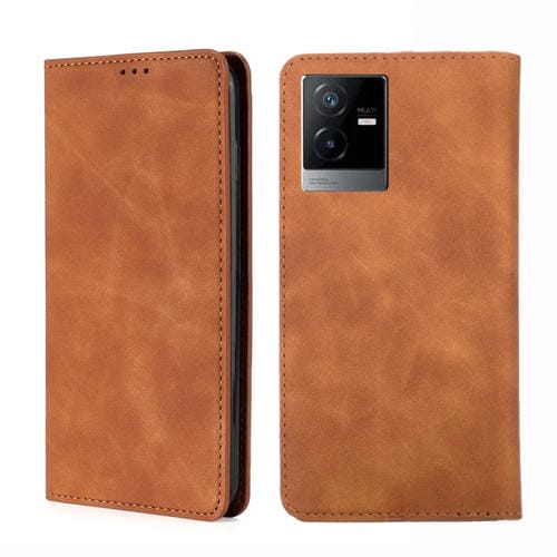 Para Vivo T2X 5G/Y73T/Iqoo Z6X Skin Feel Magnetic Horizontal Flip Leather Phone Case (Marrón Claro)