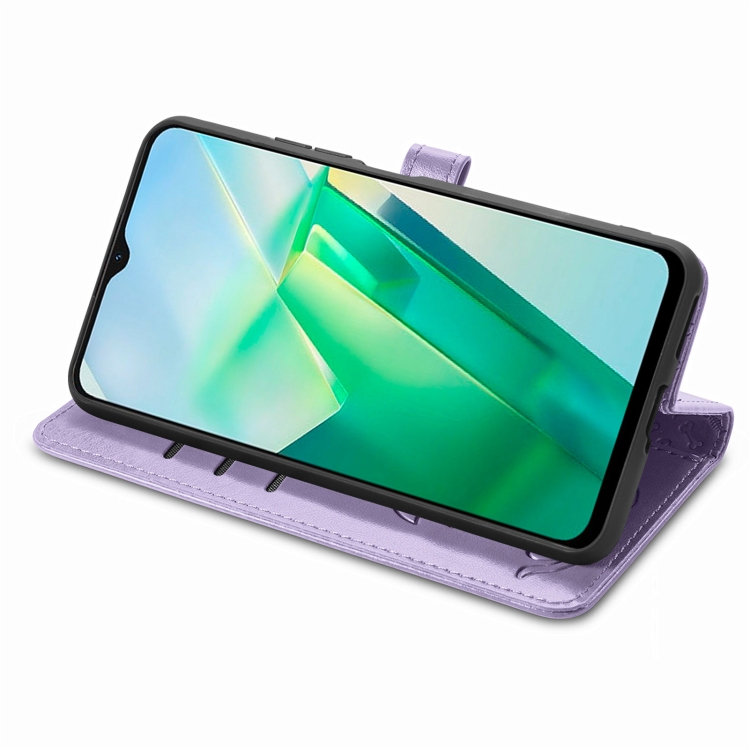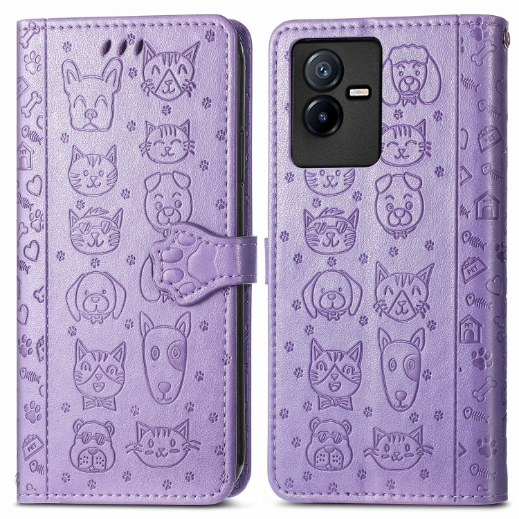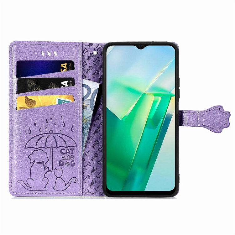 Para Vivo T2X Cute Cat And Dog Estuche de Cuero En Relieve para Teléfono (Púrpura)