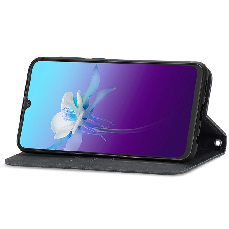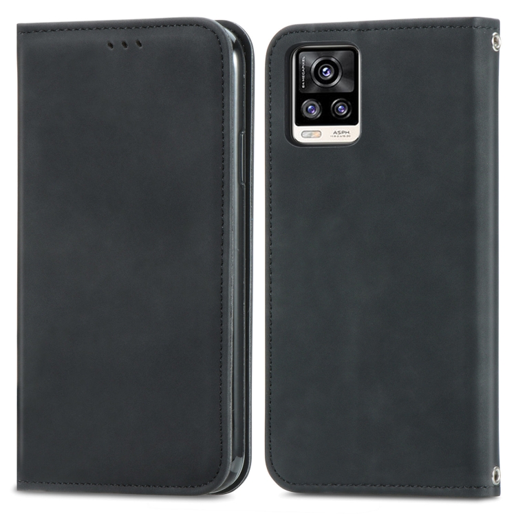 Para Vivo V20 2021 Retro Siente la Piel Magnética Horizontal Flip Funda de Cuero con Soporte y Ranuras para Tarjetas y Marco de Fotografía (Negro)