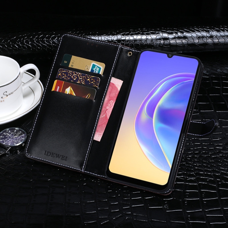 Para Vivo V21E 4G Idewei Crocodile Texture Horizontal Flip Funda de Cuero con Soporte y Ranuras para Tarjetas y Billetera (Azul Oscuro)