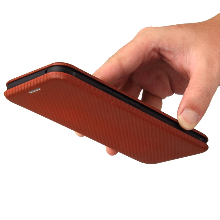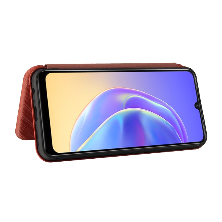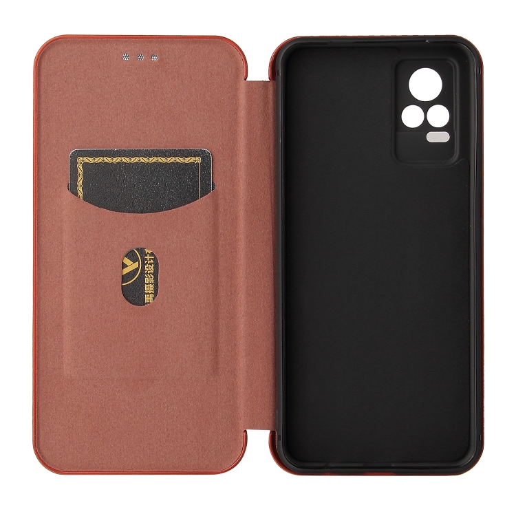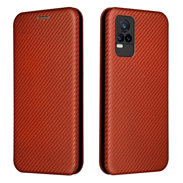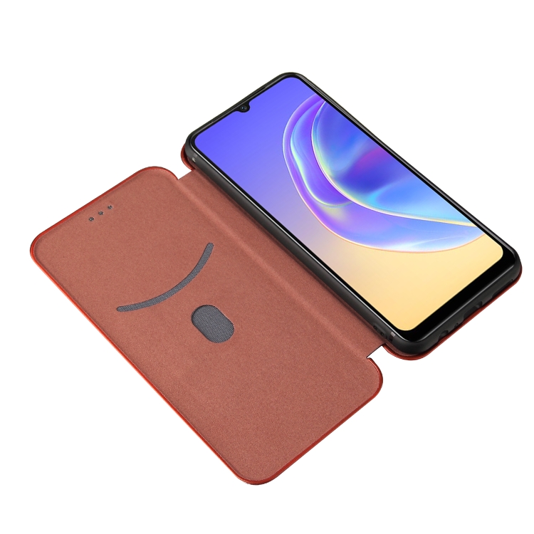 Para Vivo V21E Fibra de Carbono Textura Magnético Horizontal Flip TPU + PC + Funda de Cuero Pu con Ranura para Tarjeta (Marrón)