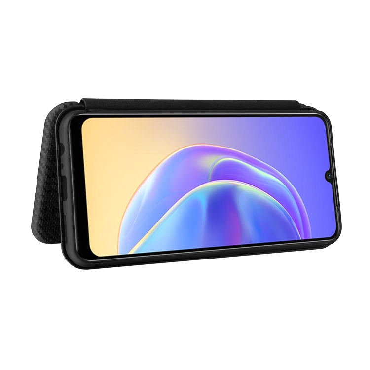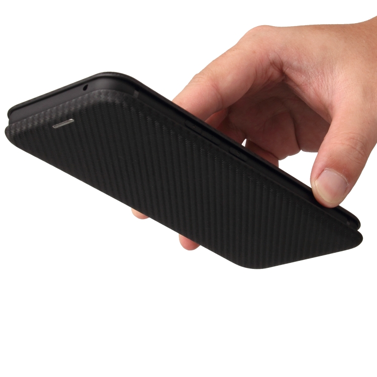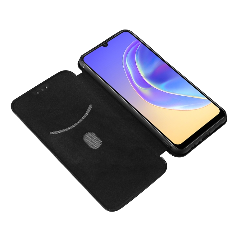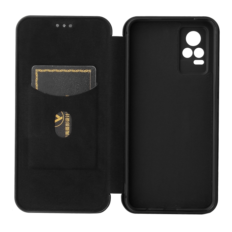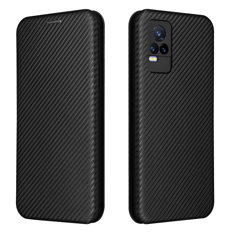 Para Vivo V21E Fibra de Carbono Textura Magnético Horizontal Flip TPU + PC + Funda de Cuero Pu con Ranura para Tarjeta (Negro)