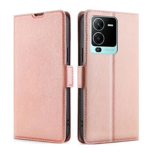 Para Vivo V25 Pro 5G Estuche para Teléfono de Cuero con Tapa Horizontal y Hebilla Lateral de Voltaje Ultrafino (Oro Rosa)