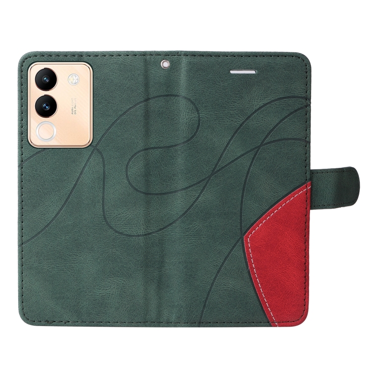 Para Vivo V29E Global / Y200 5G Global Funda de Cuero con Tapa y Empalme de Dos Colores (Verde)