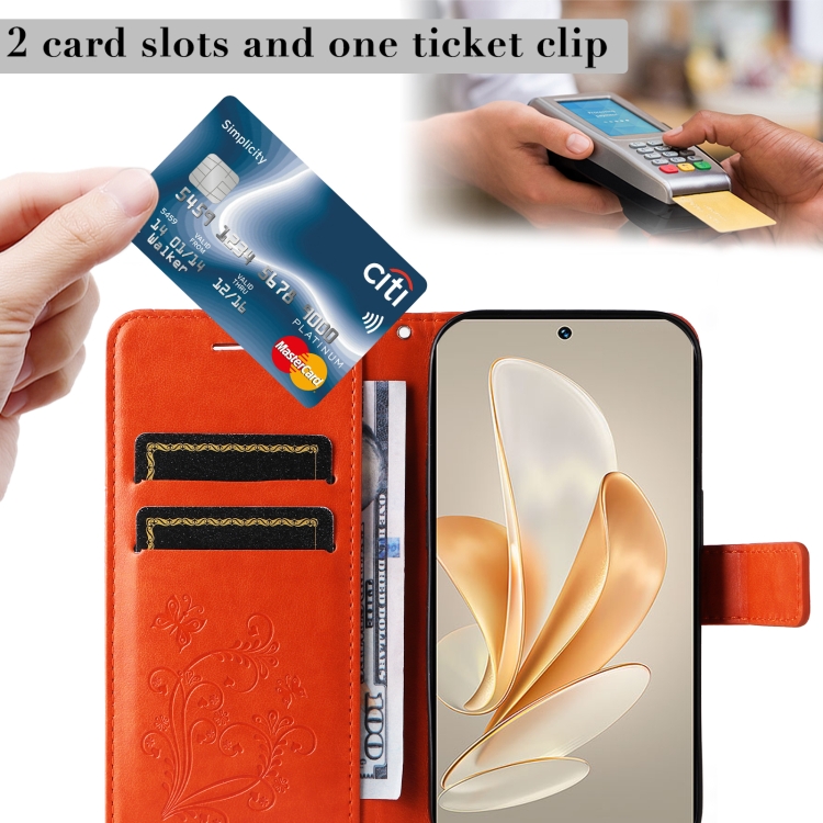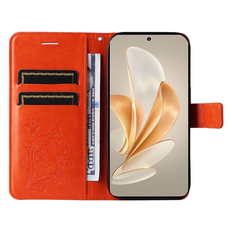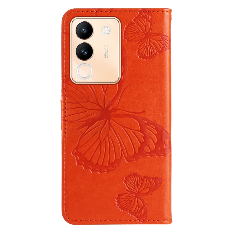 Para Vivo V29E Global / Y200 5G Global Funda para Teléfono de Cuero con Tapa En Relieve con Mariposa 3D (Naranja)
