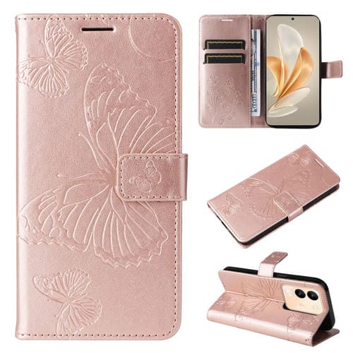 Para Vivo V29E Global / Y200 5G Global Funda para Teléfono de Cuero con Tapa En Relieve con Mariposa 3D (Oro Rosa)