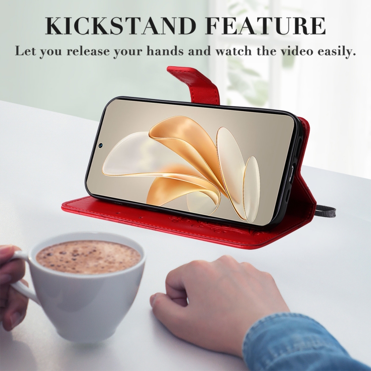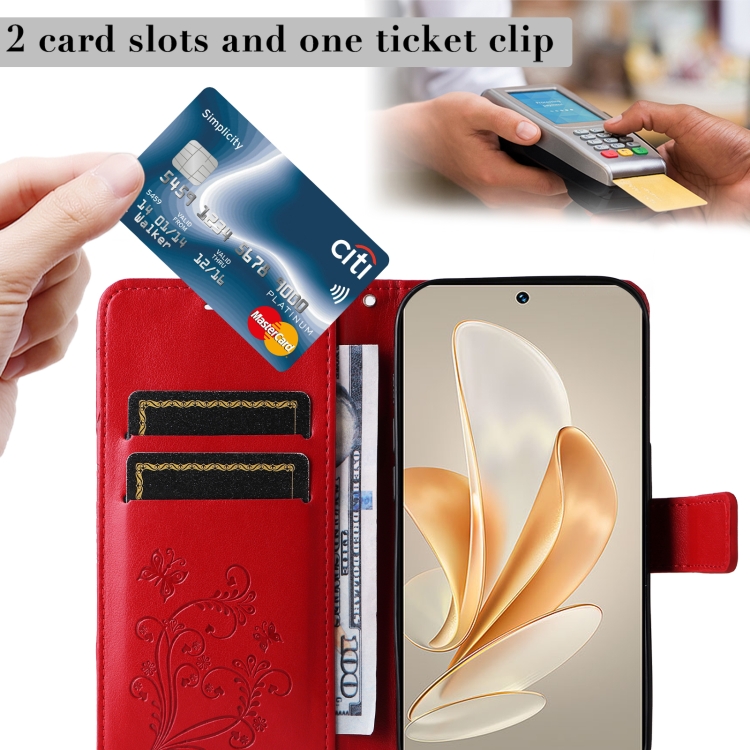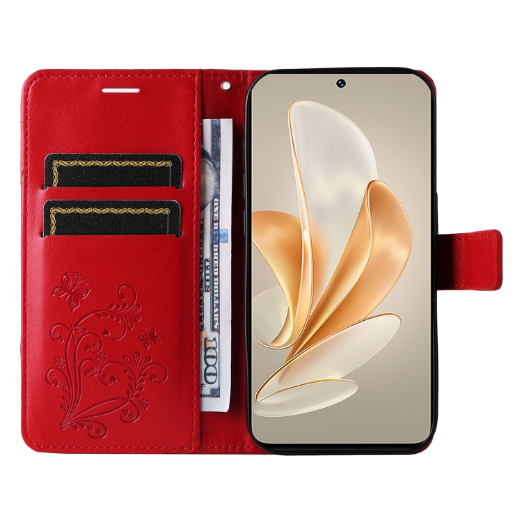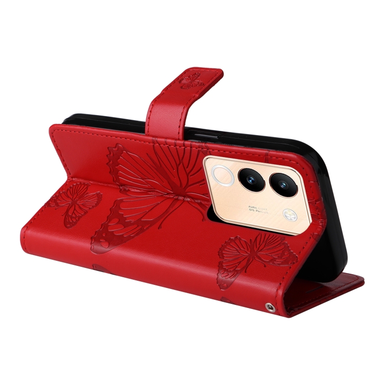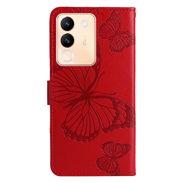 Para Vivo V29E Global / Y200 5G Global Funda para Teléfono de Cuero con Tapa En Relieve con Mariposa 3D (Rojo)