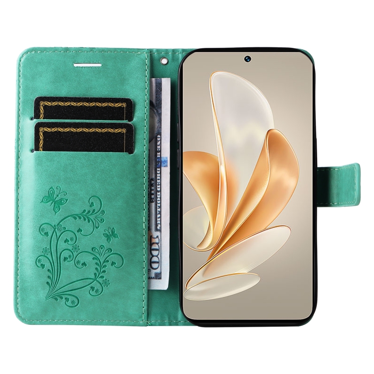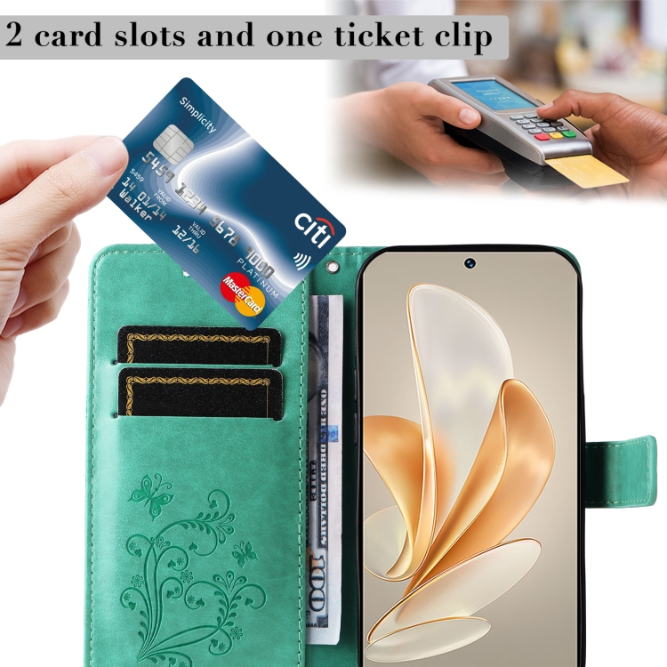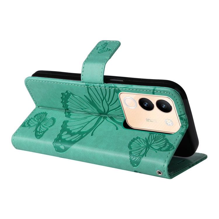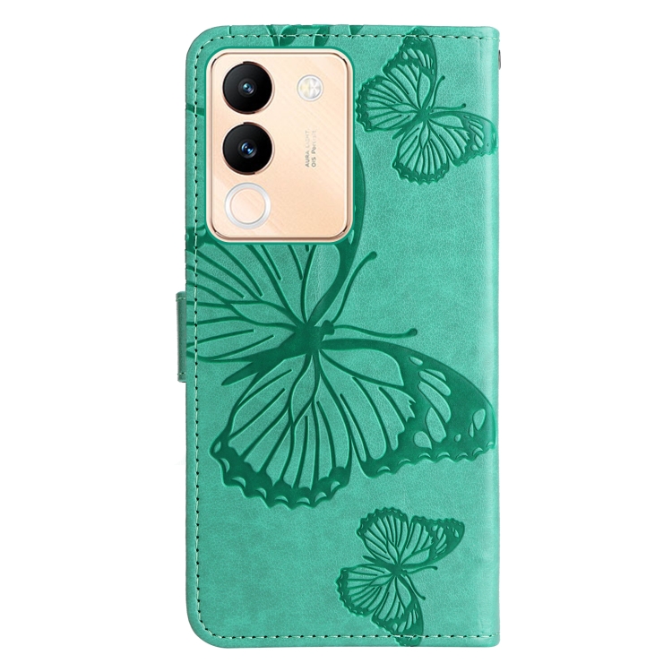 Para Vivo V29E Global / Y200 5G Global Funda para Teléfono de Cuero con Tapa En Relieve con Mariposa 3D (Verde)