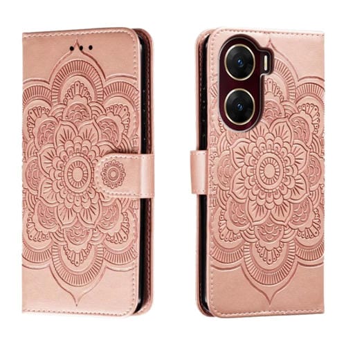 Para Vivo V29E Sun Mandala Funda de Cuero para Teléfono con Patrón En Relieve (Oro Rosa)