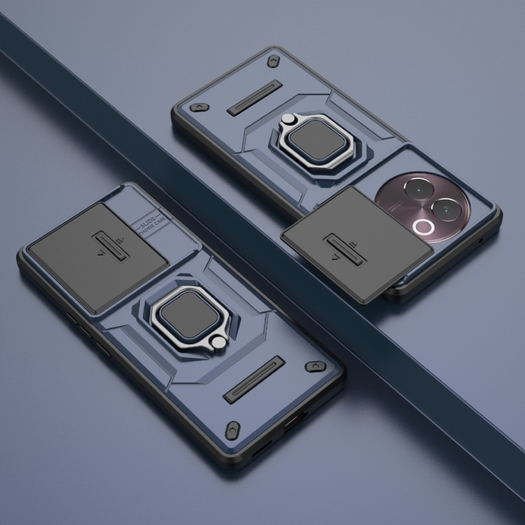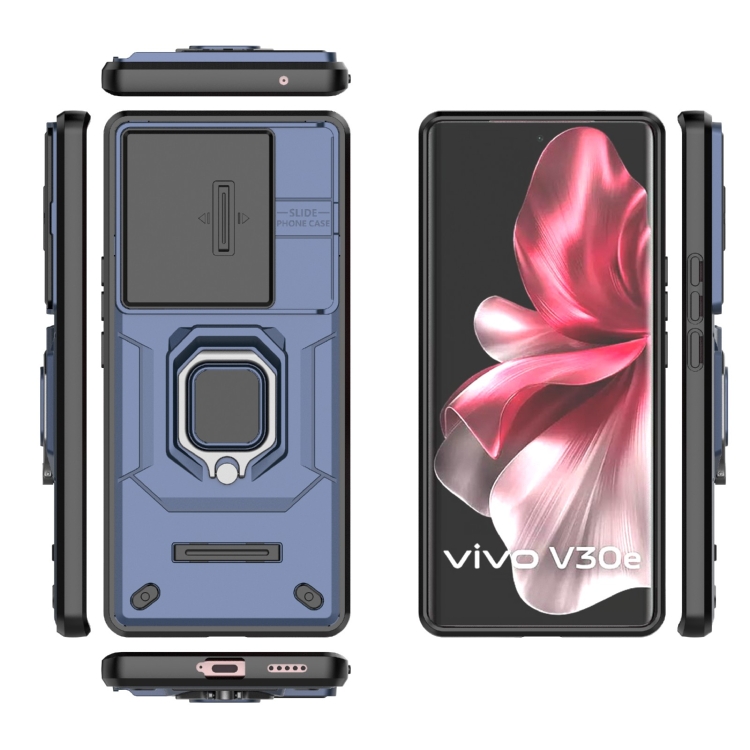 Para Vivo V30E 5G Global Sliding Camshield TPU + PC Funda para Teléfono a Prueba de Golpes con Soporte (Azul)