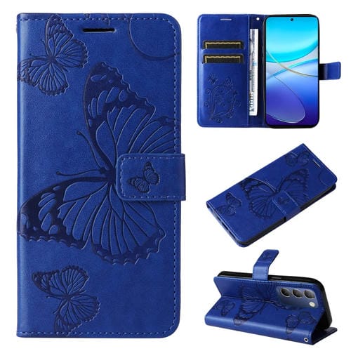 Para Vivo V40 Se 5G / Y100 Idn Funda para Teléfono de Cuero con Tapa En Relieve con Mariposa 3D (Azul)