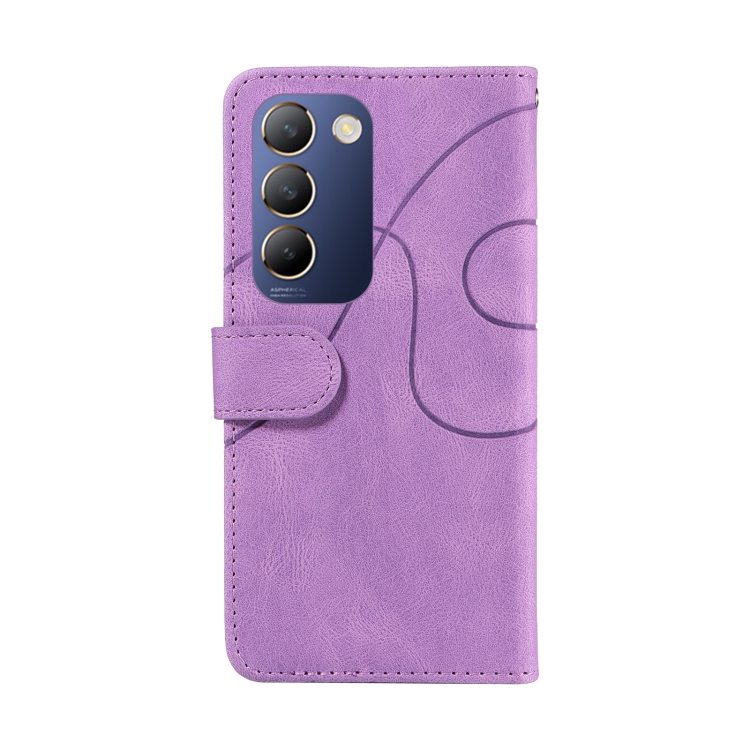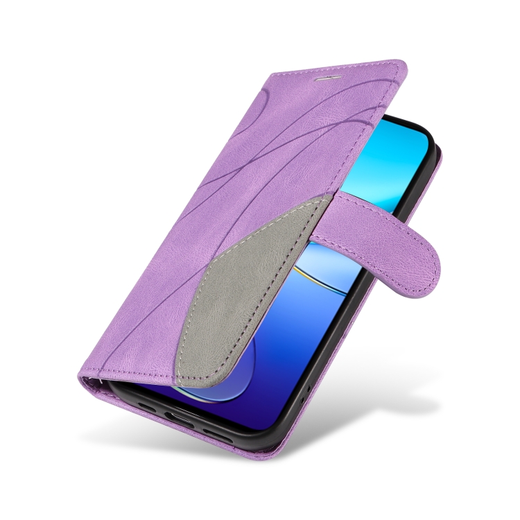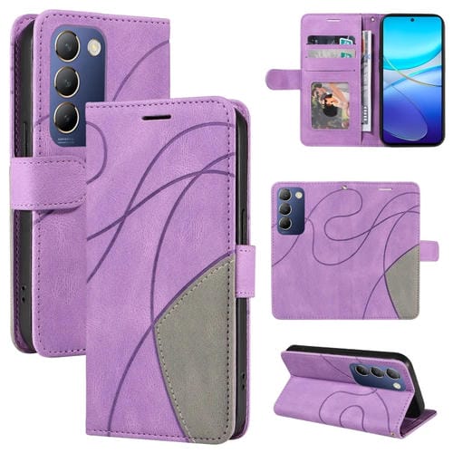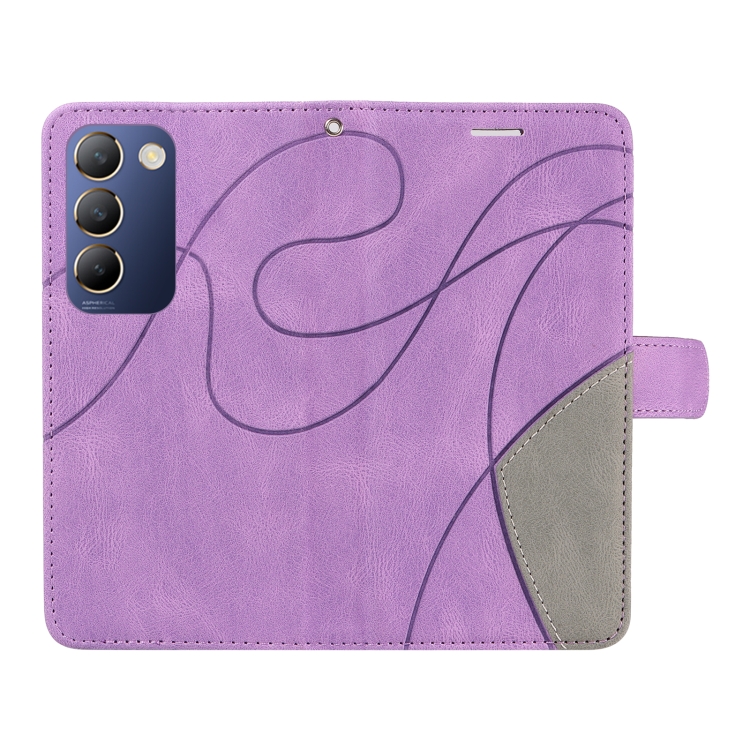 Para Vivo V40 Se 5G / Y100 Idn Funda para Teléfono de Cuero con Tapa y Empalme de Dos Colores (Púrpura)