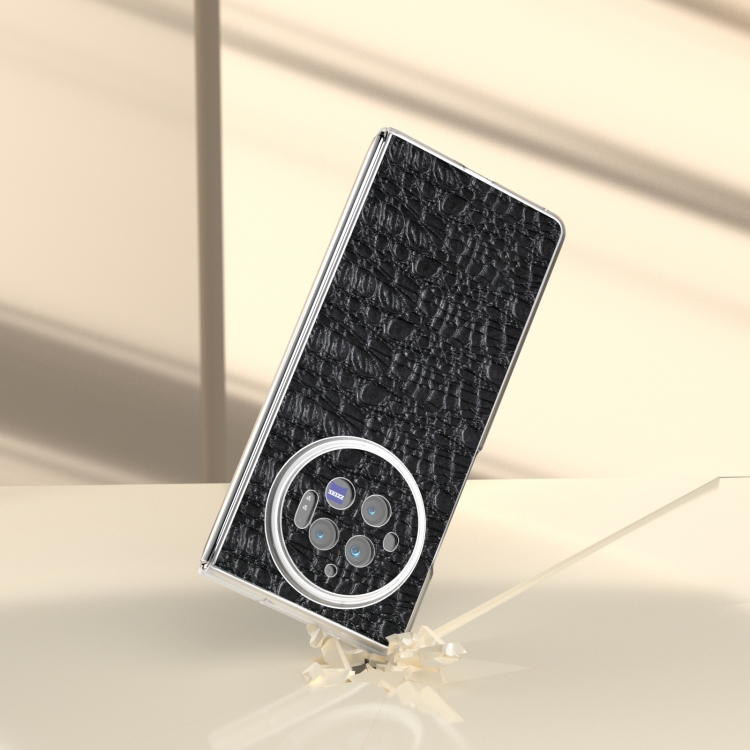 Para Vivo X Fold3 Estuche para Teléfono con Dosel de Cuero Genuino con Borde Transparente Esmerilado (Negro)
