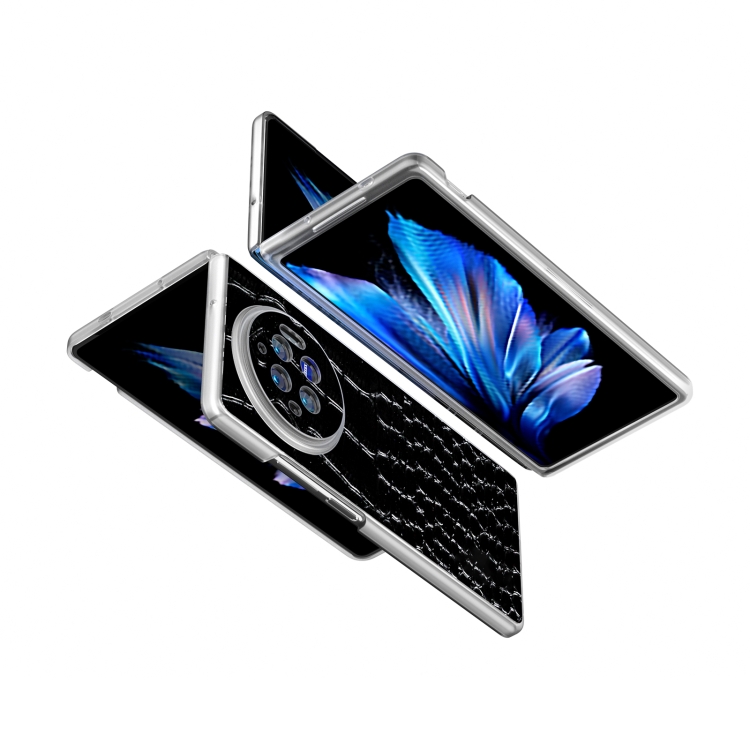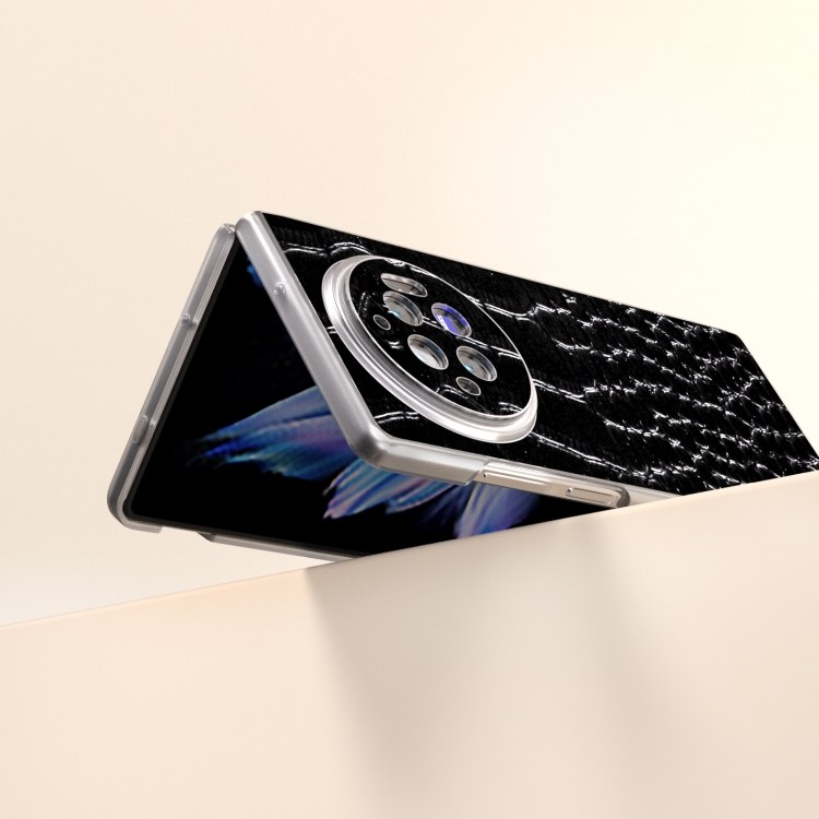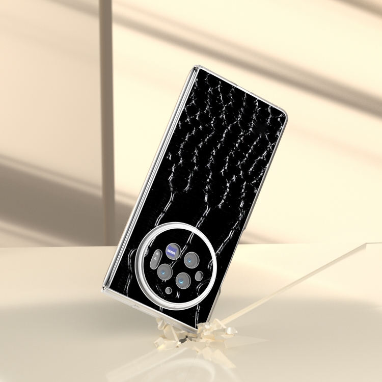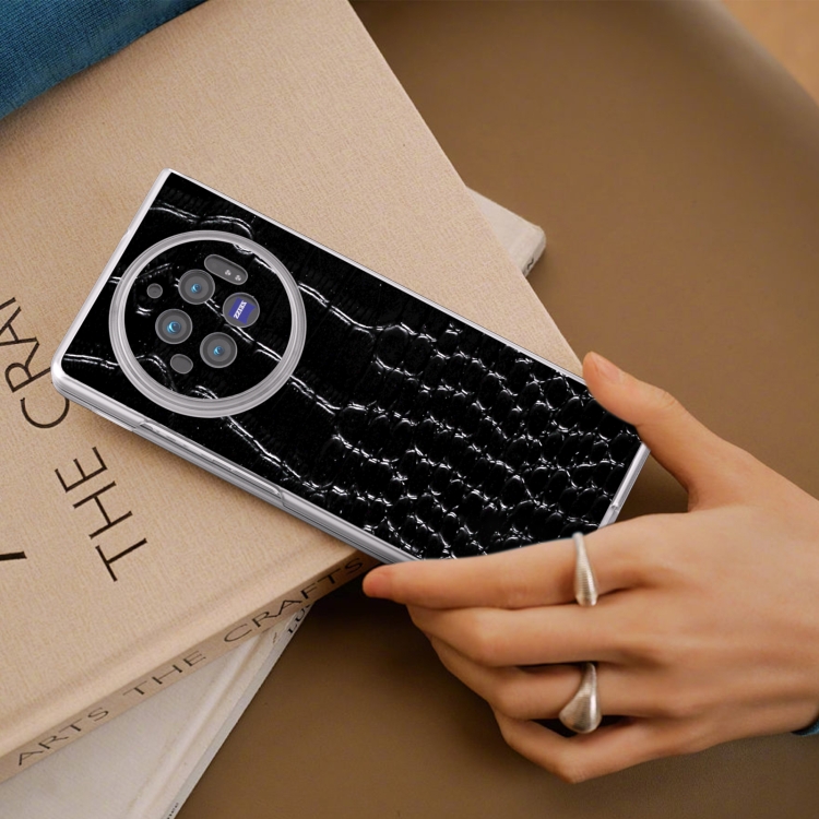 Para Vivo X Fold3 Estuche para Teléfono con Patrón de Cocodrilo de Cuero Genuino con Borde Transparente Esmerilado (Negro)