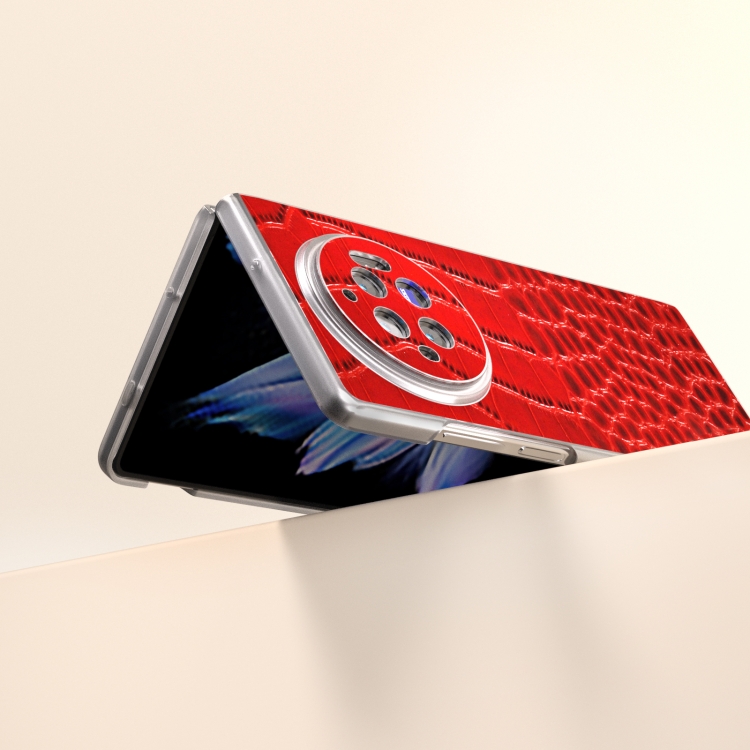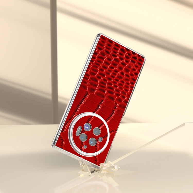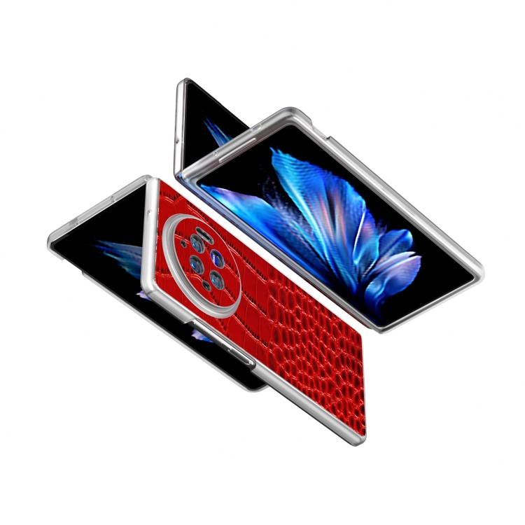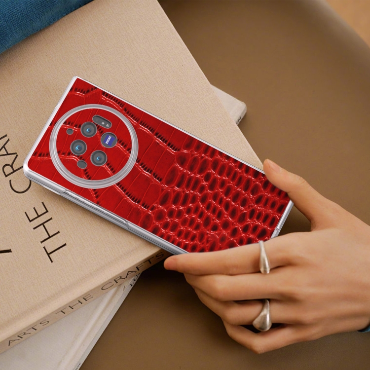 Para Vivo X Fold3 Estuche para Teléfono con Patrón de Cocodrilo de Cuero Genuino con Borde Transparente Esmerilado (Rojo)
