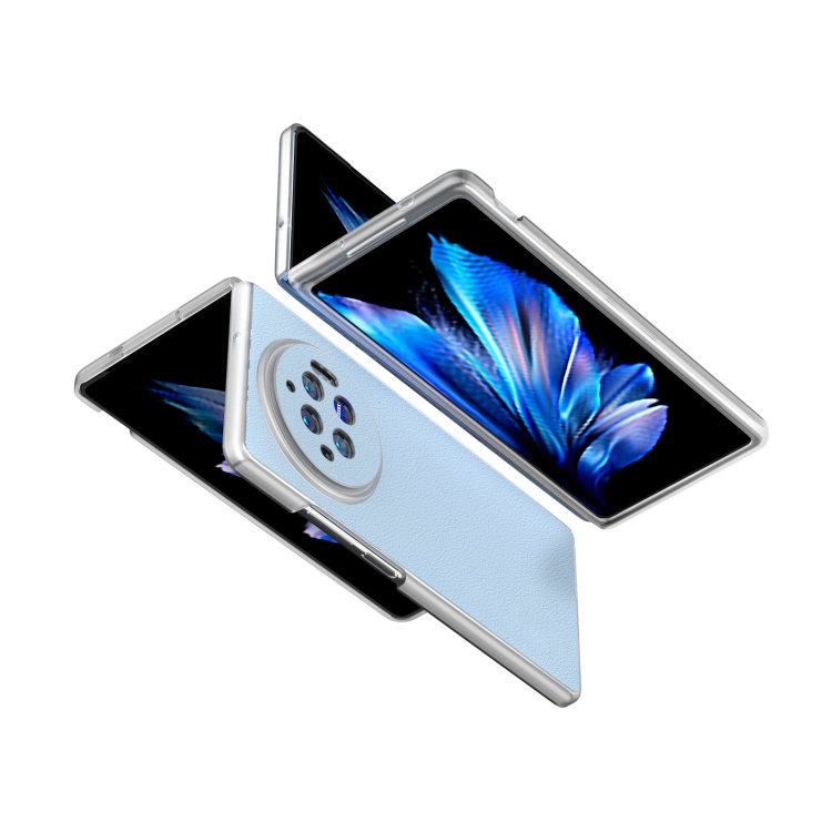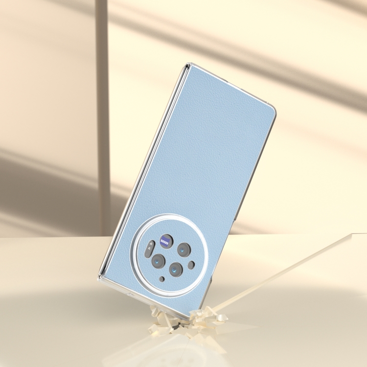 Para Vivo X Fold3 Estuche para Teléfono Ondulado de Cuero Genuino con Borde Transparente Esmerilado (Azul)