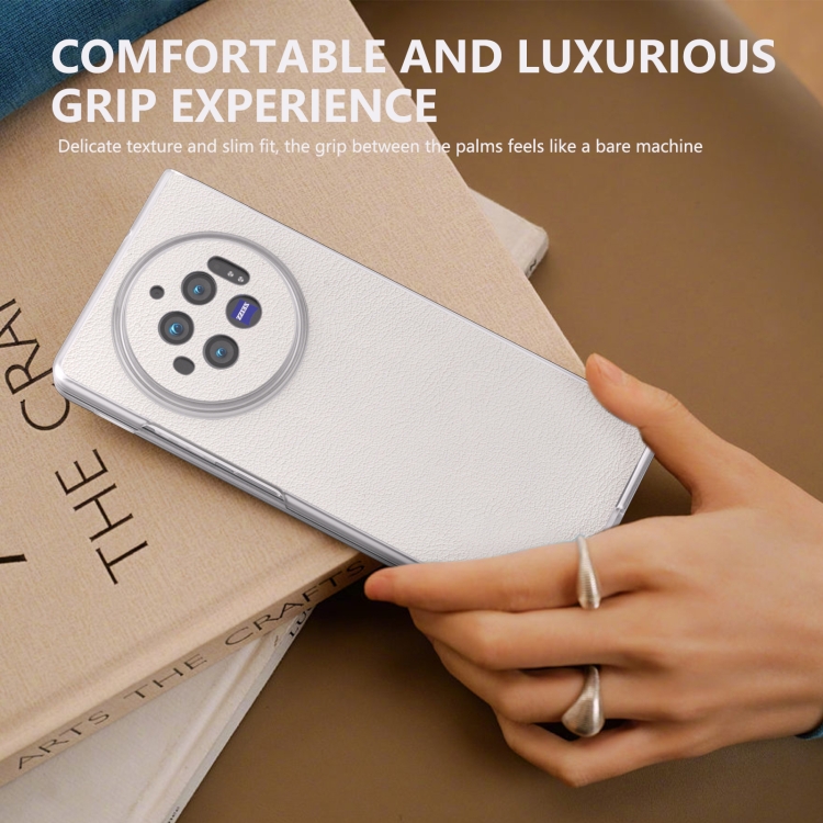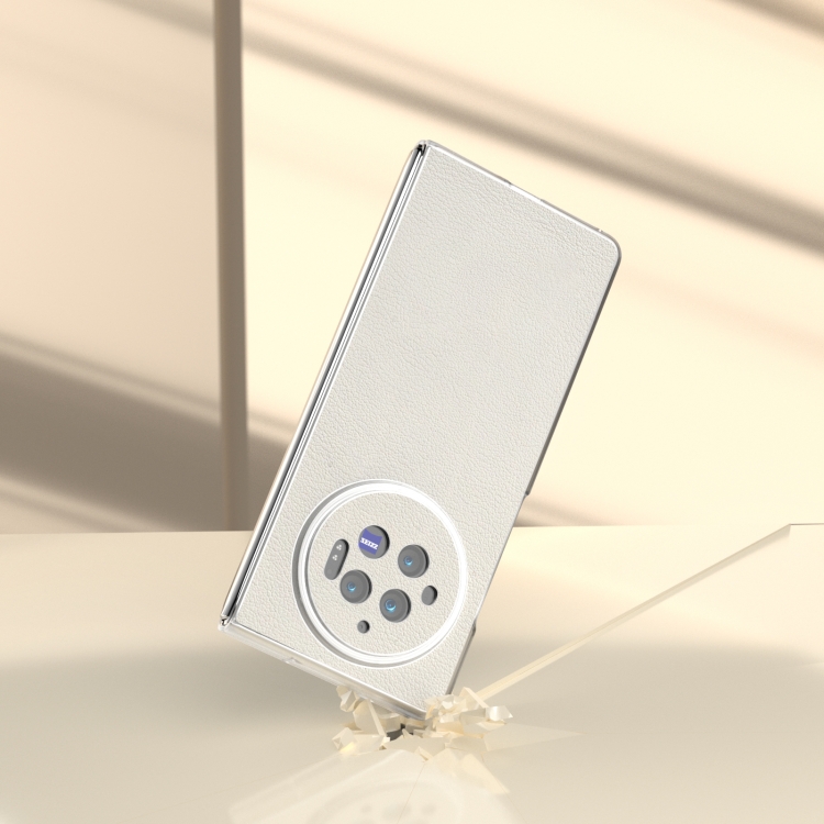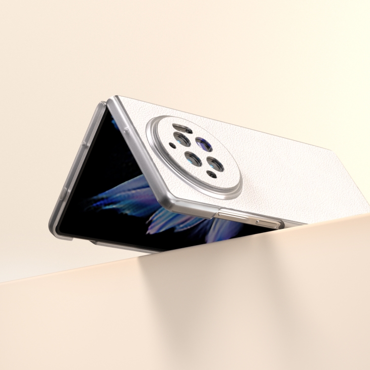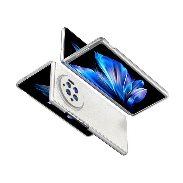 Para Vivo X Fold3 Estuche para Teléfono Ondulado de Cuero Genuino con Borde Transparente Esmerilado (Gris)