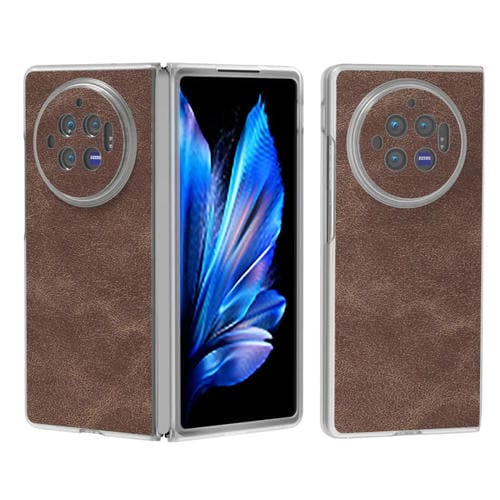 Para Vivo X Fold3 Funda para Teléfono con Borde Transparente Esmerilado de Cuero Pu (Café)