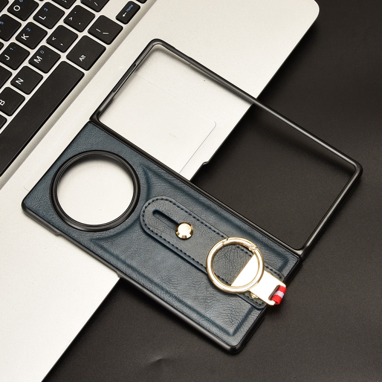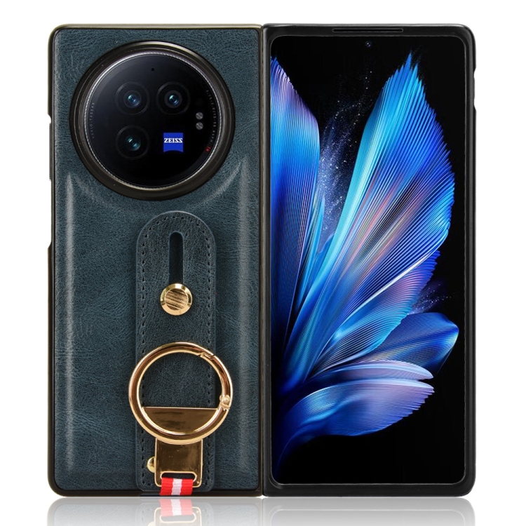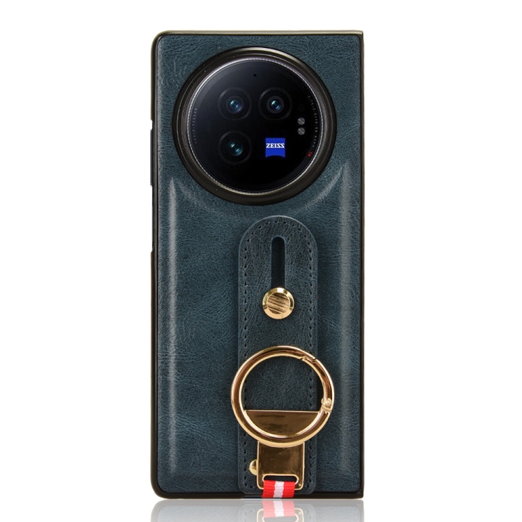 Para Vivo X Fold3 Funda Trasera de Cuero para Teléfono con Pulsera (Azul)