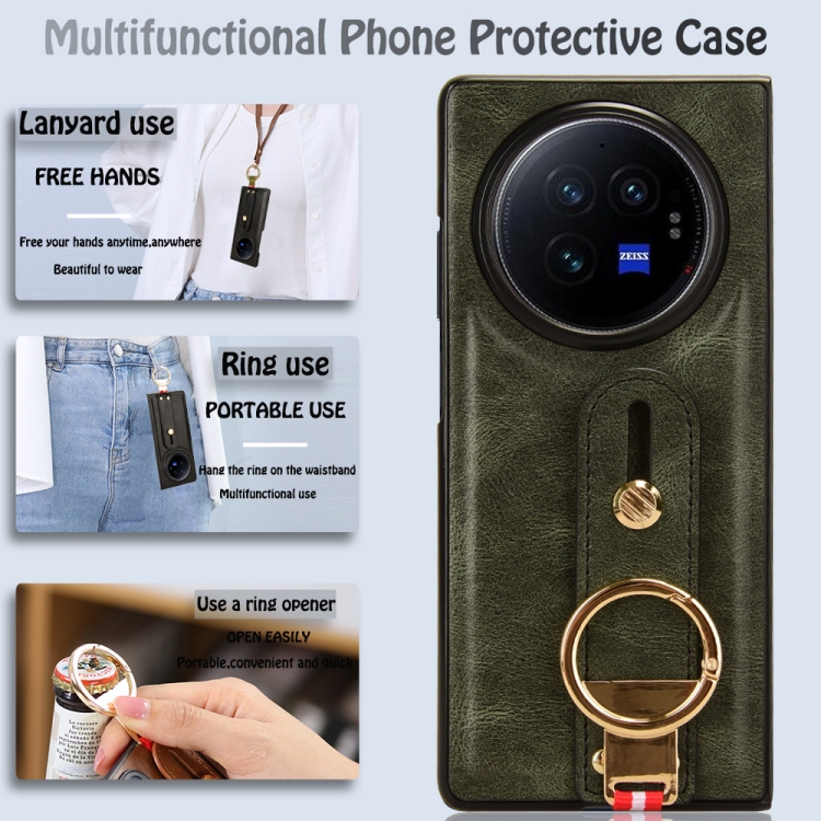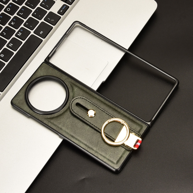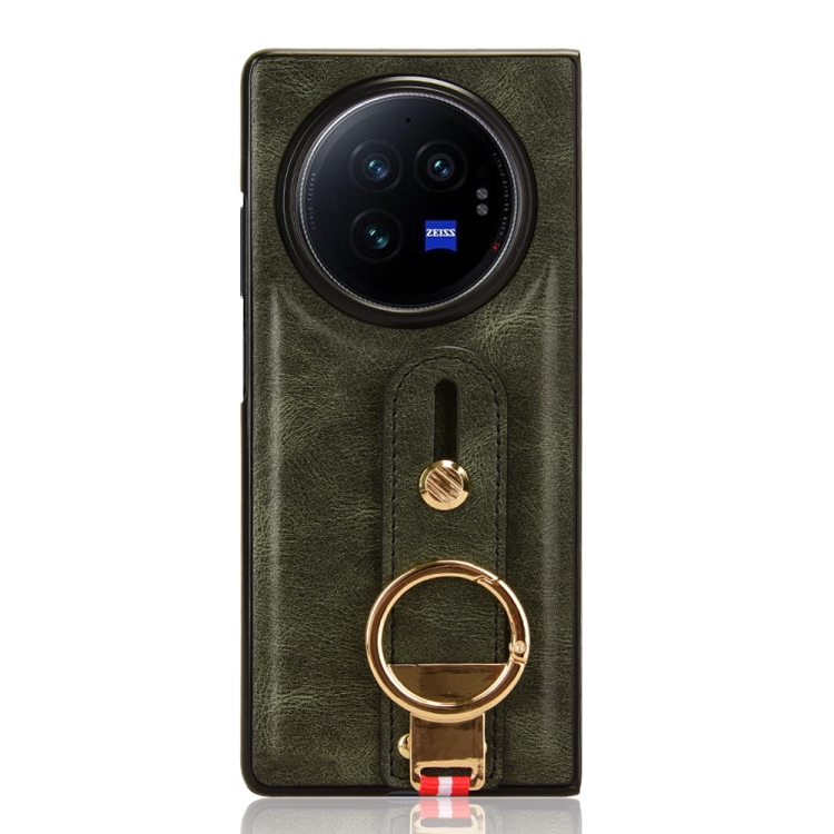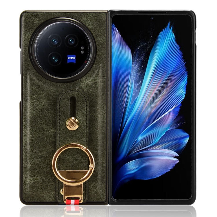 Para Vivo X Fold3 Funda Trasera de Cuero para Teléfono con Pulsera (Verde)