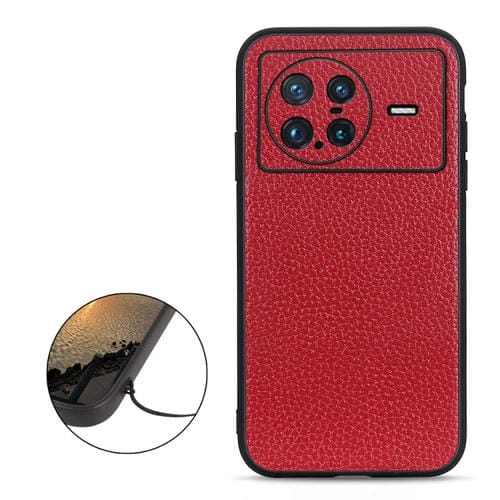 Para Vivo X Nota con El Agujero Preciso Litchi Textura Caja de Teléfono de Cuero Genuino (Rojo)