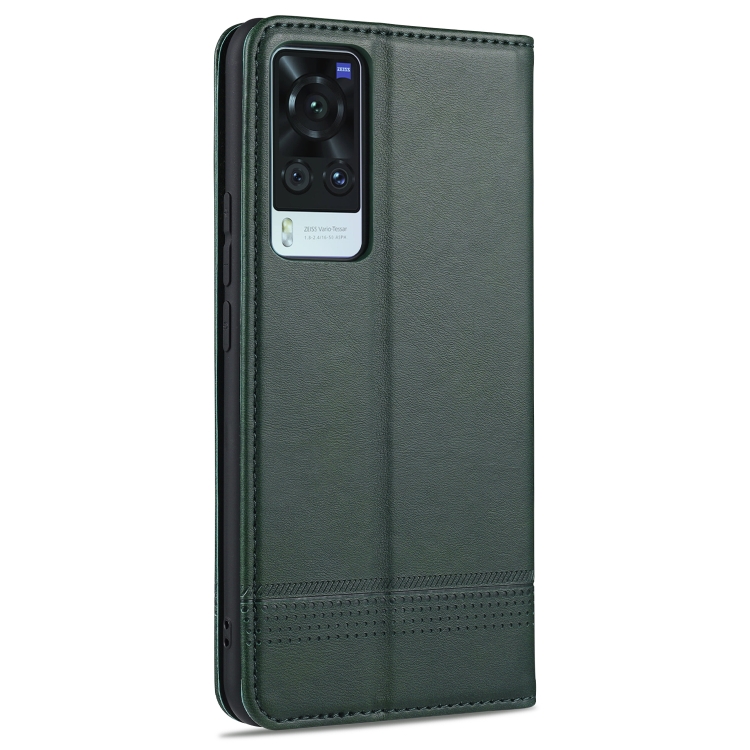 Para Vivo X60 5G Azns Funda de Cuero con Tapa Horizontal con Textura de Becerro Magnética con Ranuras para Tarjetas, Soporte y Billetera (Verde Oscuro)