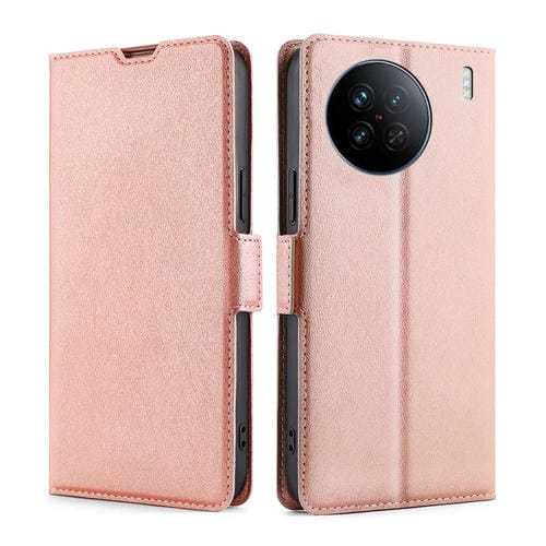 Para Vivo X90 Funda de Teléfono de Cuero con Tapa Horizontal con Hebilla Lateral de Voltaje Ultrafino (Oro Rosa)