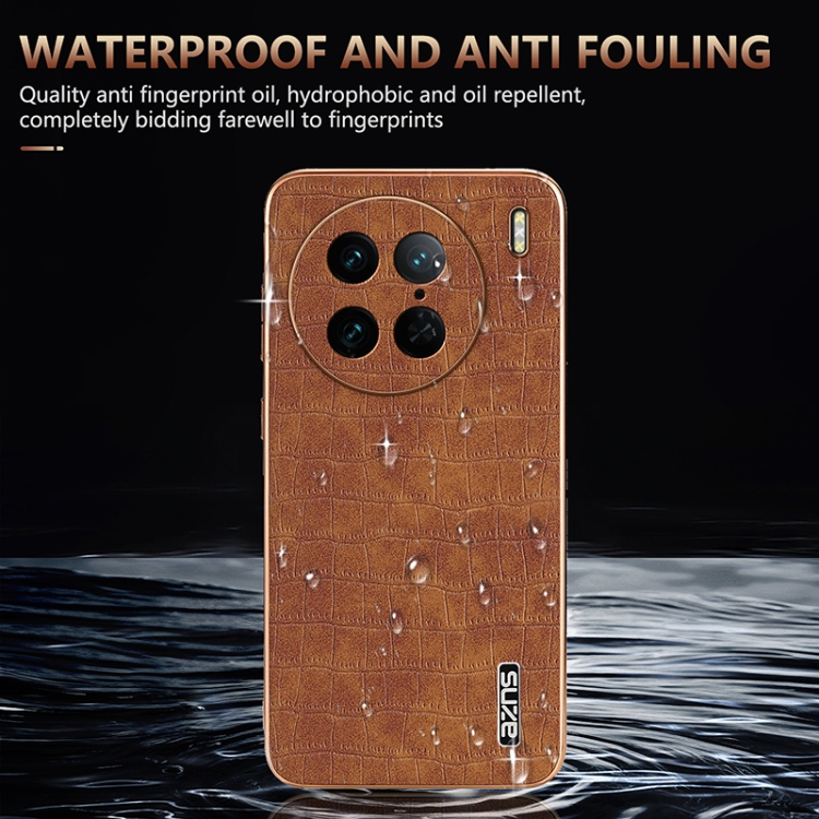 Para Vivo X90 Pro Azns Estuche para Teléfono con Textura de Cocodrilo y Marco Galvanizado (Blanco)