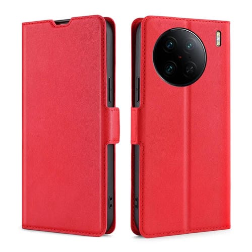 Para Vivo X90 Pro + Estuche para Teléfono de Cuero con Tapa Horizontal y Hebilla Lateral de Voltaje Ultrafino (Rojo)