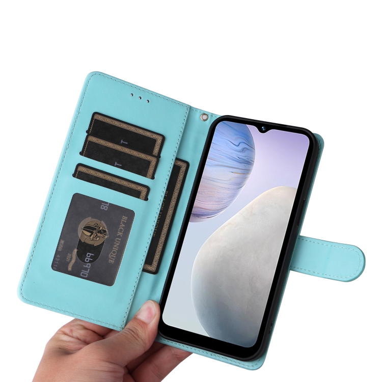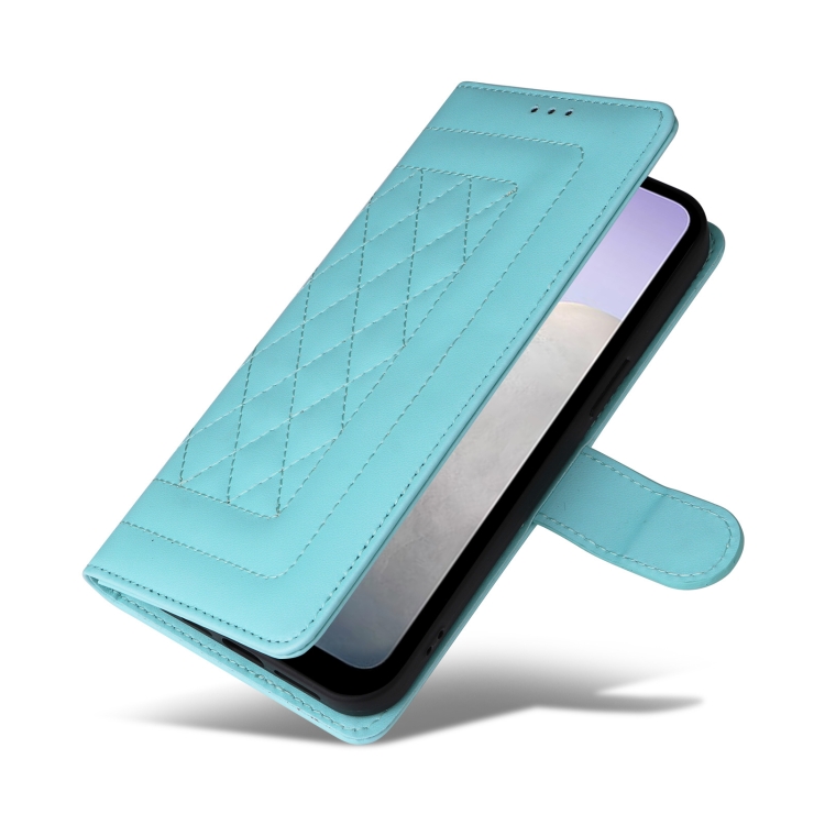 Para Vivo Y02 Diamond Lattice Funda de Cuero para Teléfono con Tapa (Verde Menta)