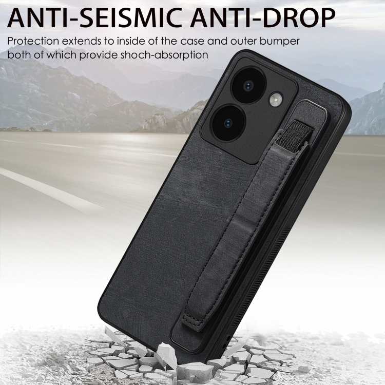 Para Vivo Y02 Retro Muñequera Funda Trasera de Cuero para Teléfono (Negro)