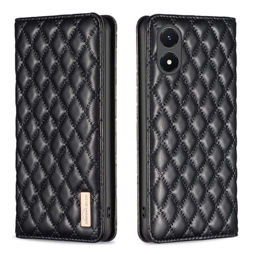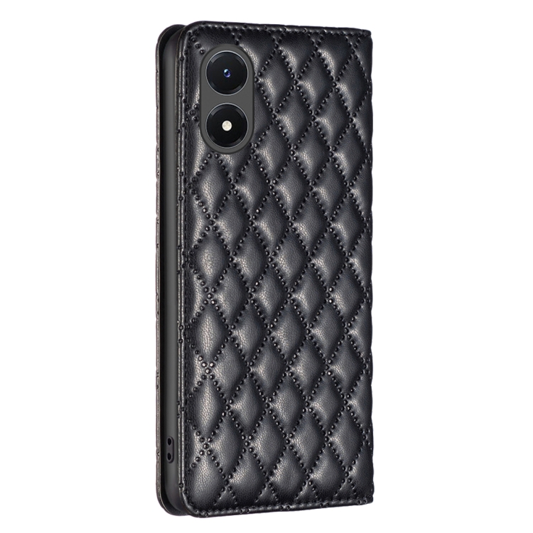 Para Vivo Y02S Diamond Lattice Magnetic Leather Flip Phone Case (Negro)